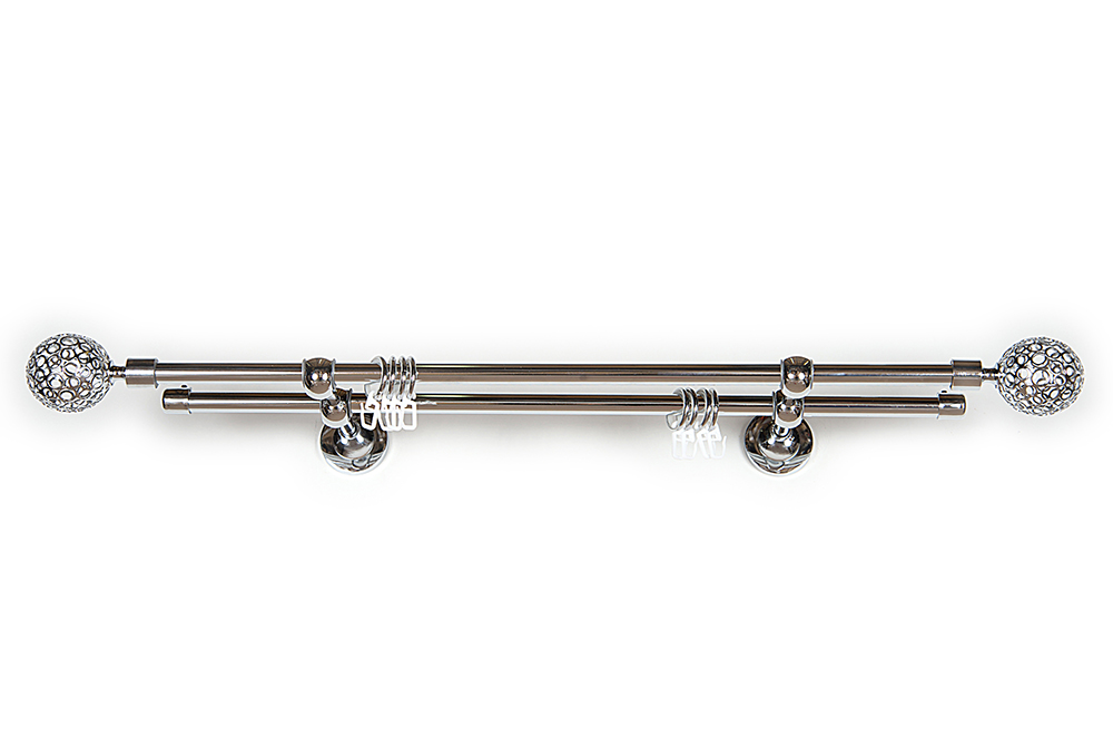 Главная / Каталог / Карнизы / Карнизы металлические для штор / Артметалл однорядный d16 c наконечниками / Карниз Артметалл однорядный d16 c наконечниками Ажур Серебро глянец 1800 мм