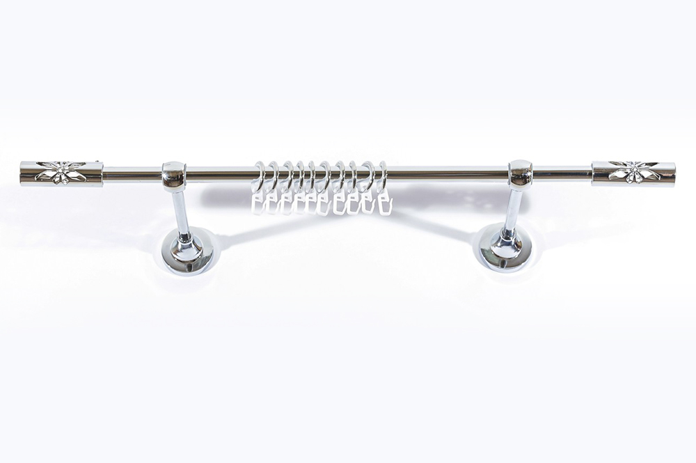 Главная / Каталог / Карнизы / Карнизы металлические для штор / Артметалл однорядный d16 c наконечниками / Карниз Артметалл однорядный Бабочка Серебро глянец 1800 мм