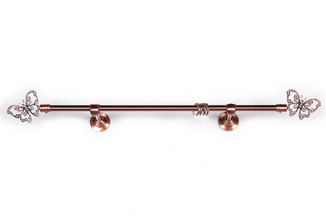 Главная / Каталог / Карнизы / Карнизы металлические для штор / Артметалл однорядный d16 c наконечниками / Карниз Артметалл однорядный d16 c наконечниками Бабочка de lux Медь 2000 мм