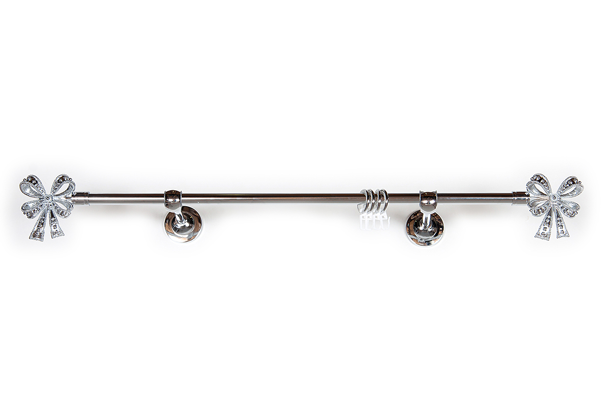 Главная / Каталог / Карнизы / Карнизы металлические для штор / Артметалл однорядный d16 c наконечниками / Карниз Артметалл однорядный d16 c наконечниками Бант Серебро глянец 2000 мм