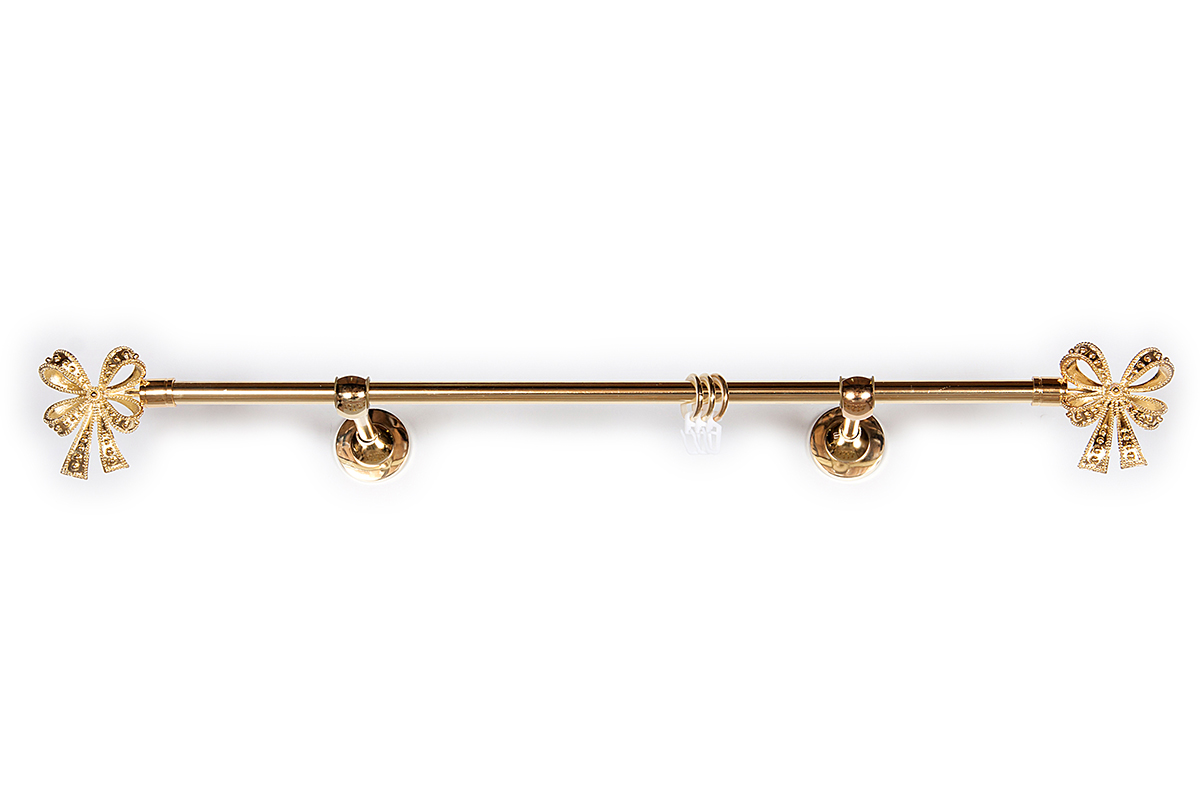 Главная / Каталог / Карнизы / Карнизы металлические для штор / Артметалл однорядный d16 c наконечниками / Карниз Артметалл однорядный d16 c наконечниками Бант Золото глянец 3400 мм