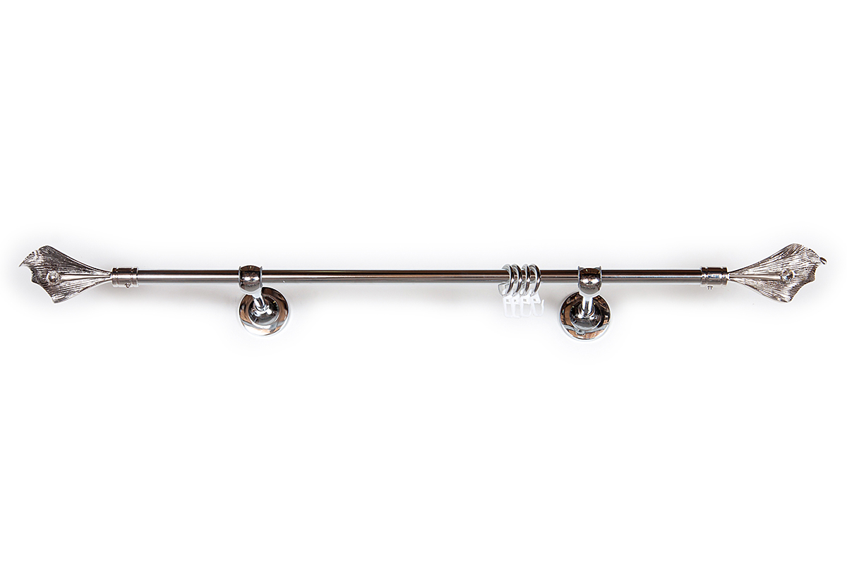 Главная / Каталог / Карнизы / Карнизы металлические для штор / Артметалл однорядный d16 c наконечниками / Карниз Артметалл однорядный d16 c наконечниками Цветок Серебро глянец 2800 мм