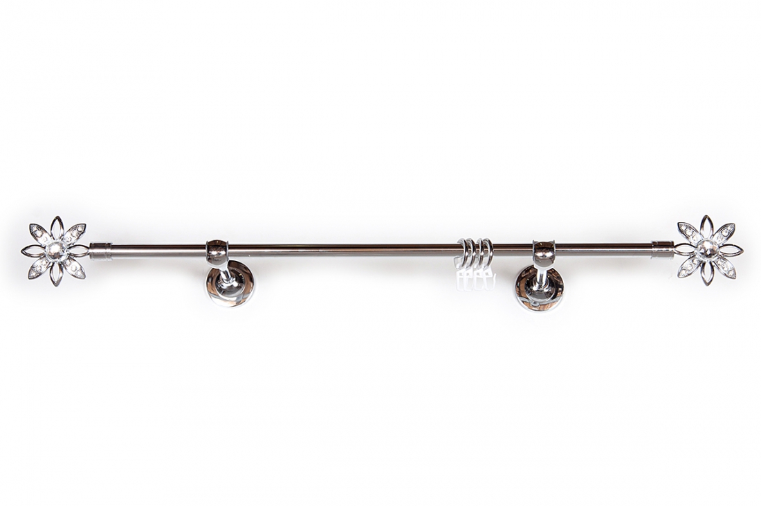 Главная / Каталог / Карнизы / Карнизы металлические для штор / Артметалл однорядный d16 c наконечниками / Карниз Артметалл однорядный d16 c наконечниками Гербера Серебро глянец 3400 мм