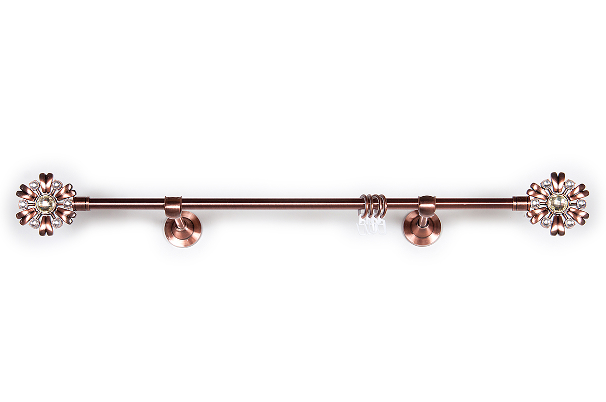Главная / Каталог / Карнизы / Карнизы металлические для штор / Артметалл однорядный d16 c наконечниками / Карниз Артметалл однорядный d16 c наконечниками Солнце Медь 2000 мм