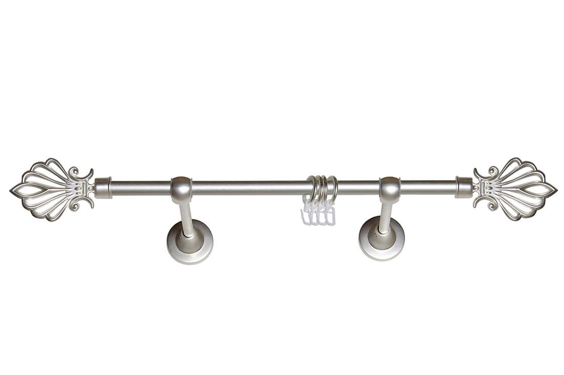 Главная / Каталог / Карнизы / Карнизы металлические для штор / Артметалл однорядный d16 c наконечниками / Карниз Артметалл однорядный d16 c наконечниками Веер Платина 2800 мм
