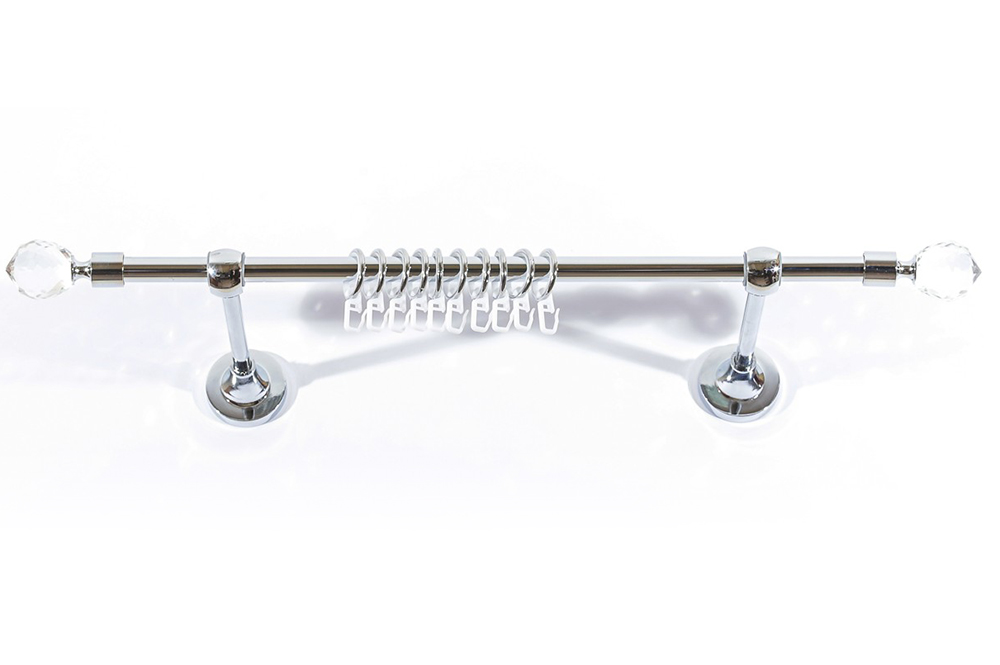 Главная / Каталог / Карнизы / Карнизы металлические для штор / Артметалл однорядный d16 c наконечниками / Карниз Артметалл однорядный d16 c наконечниками Кристалл Серебро глянец 2400 мм