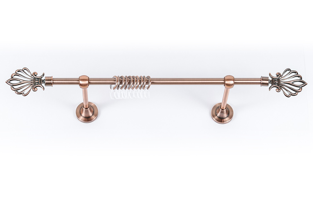 Главная / Каталог / Карнизы / Карнизы металлические для штор / Артметалл однорядный d16 c наконечниками / Карниз Артметалл однорядный d16 c наконечниками Веер Медь 3200 мм