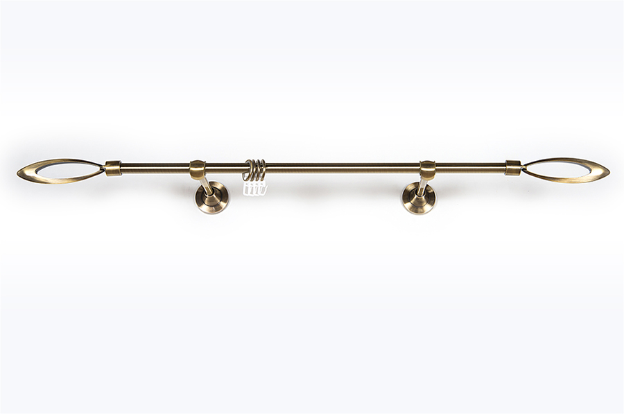 Главная / Каталог / Карнизы / Карнизы металлические для штор / Артметалл однорядный d16 c наконечниками / Карниз Артметалл однорядный d16, Эллипс Старое золото (антик) 1800 мм