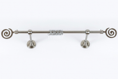 Компания «Магеллан» предлагает кованые карнизы с одной/двумя/тремя направляющими штанг, что позволяет использовать действительно оригинальные комбинации штор, тюлей и ламбрекенов. Особенно часто с нашими металлическими карнизами используют массивные, тяжелые ткани (парча, бархат, шелк), идеально гармонирующие с кованой поверхностью.