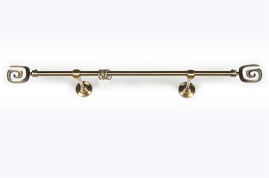 Главная / Каталог / Карнизы / Карнизы металлические для штор / Артметалл однорядный d16 c наконечниками / Карниз Артметалл однорядный , Улитка Старое золото (антик) 3200 мм