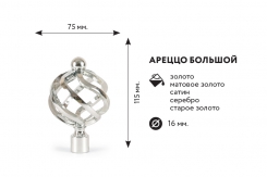 Главная / Каталог / Карнизы / Карнизы металлические для штор / Карниз Фэшн d16 , Наконечники + Фурнитура / Карниз d16мм с пластиковыми эл. ФЭШН 2-ой наконечники Большой АРЕЦЦО ЗОЛОТО 240 см