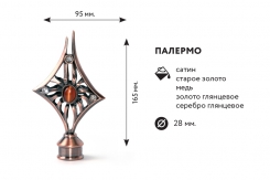 Главная / Каталог / Карнизы / Карнизы металлические для штор / Карниз Корона 1-ряд d28, Наконечники + Фурнитура / Наконечник "ПАЛЕРМО" медь d 28 мм (2 шт)