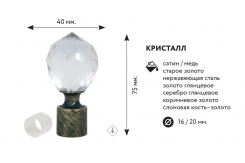 Главная / Каталог / Карнизы / Карнизы металлические для штор / Наконечники для Витого карниза и Артметалл d16 / Наконечник "КРИСТАЛЛ" золото глянец d16 мм (2 шт)