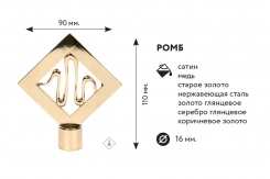 Главная / Каталог / Карнизы / Карнизы металлические для штор / Наконечники для Витого карниза и Артметалл d16 / Наконечник "РОМБ" медь d 16 мм (2 шт)