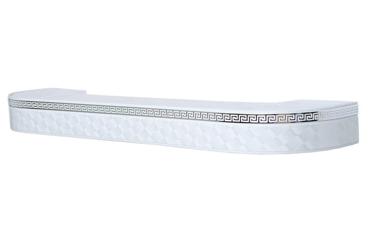 Главная / Каталог / Карнизы / Потолочные пластиковые карнизы для штор / Карниз 3ряда с закруглениями + бленда декоративная / 340 карниз Стандарт 3-х рядный Лабиринт 50мм жемчужная мозаика/серебро с пласт.декор. планкой в инд