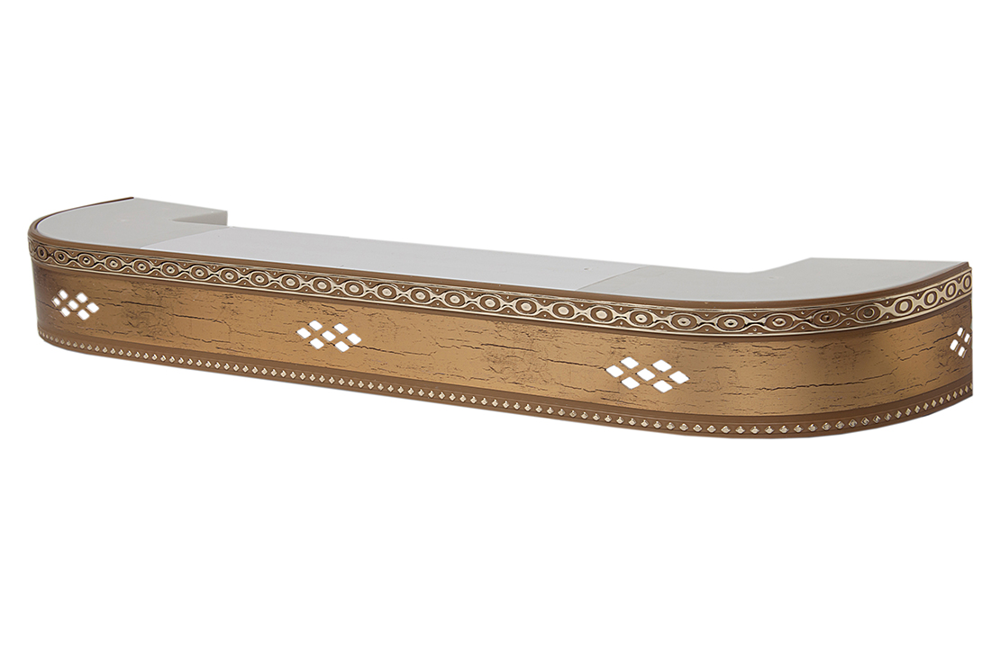 Главная / Каталог / Карнизы / Потолочные пластиковые карнизы для штор / Карниз 3ряда с закруглениями + бленда декоративная / 280 карниз СТАНДАРТ Ромб золото 3х рядный с планкой 70мм антик в инд. уп.