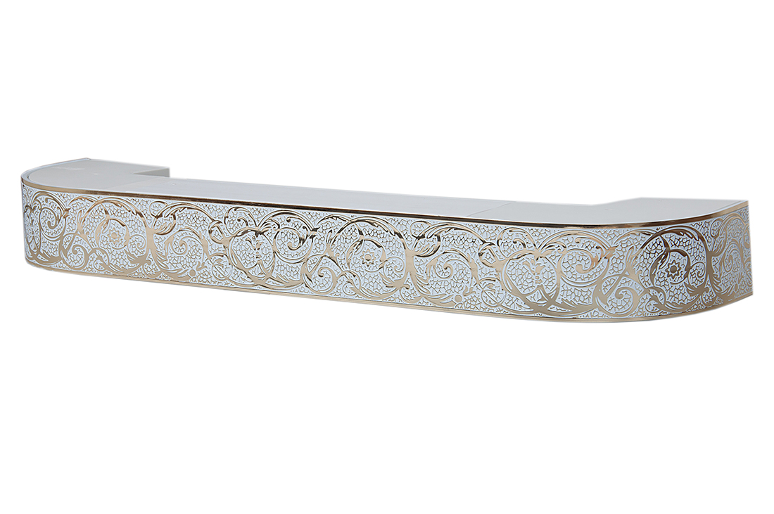 Главная / Каталог / Карнизы / Потолочные пластиковые карнизы для штор / Карниз 3ряда с закруглениями + бленда декоративная / 380 карниз СТАНДАРТ ВЕНЗЕЛЬ 3х рядный золото белый с планкой 70мм в инд. уп.