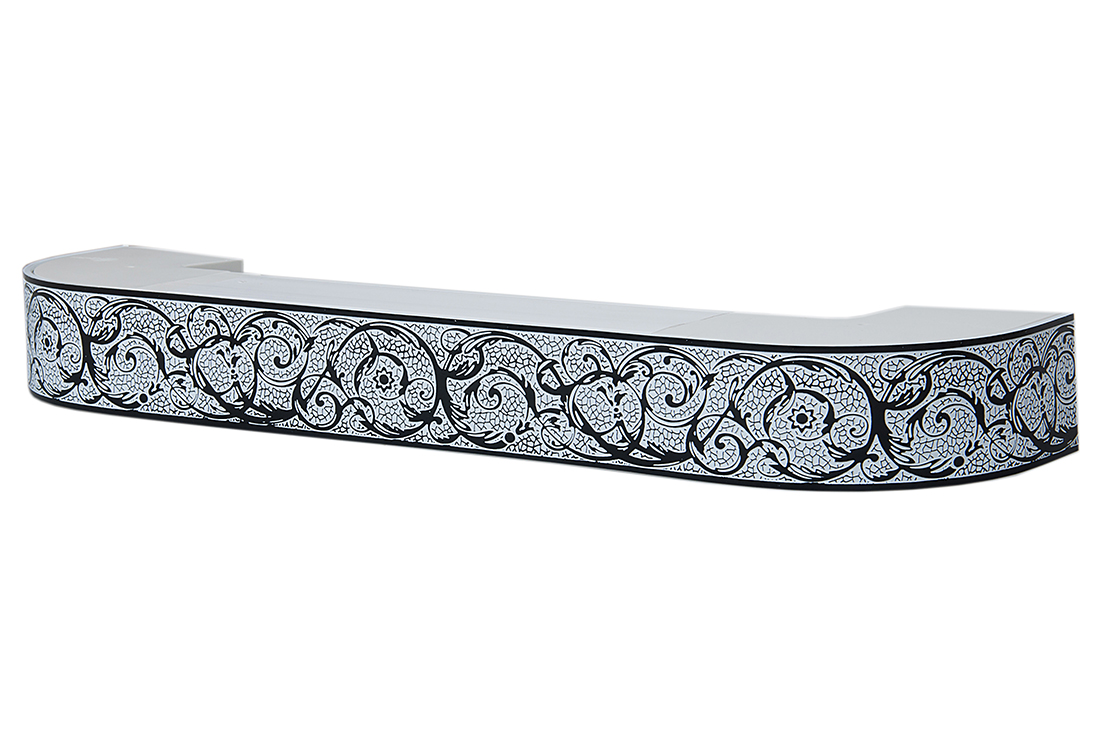 Главная / Каталог / Карнизы / Потолочные пластиковые карнизы для штор / Карниз 3ряда с закруглениями + бленда декоративная / 250 карниз СТАНДАРТ ВЕНЗЕЛЬ 3х рядный белый с черным с планкой 70мм в инд. уп.