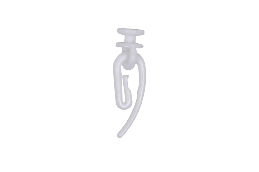 Главная / Каталог / Карнизы / Потолочные пластиковые карнизы для штор / Фурнитура для потолочных карнизов / Крючок "Улитка" с бегунком (100шт) в упаковке