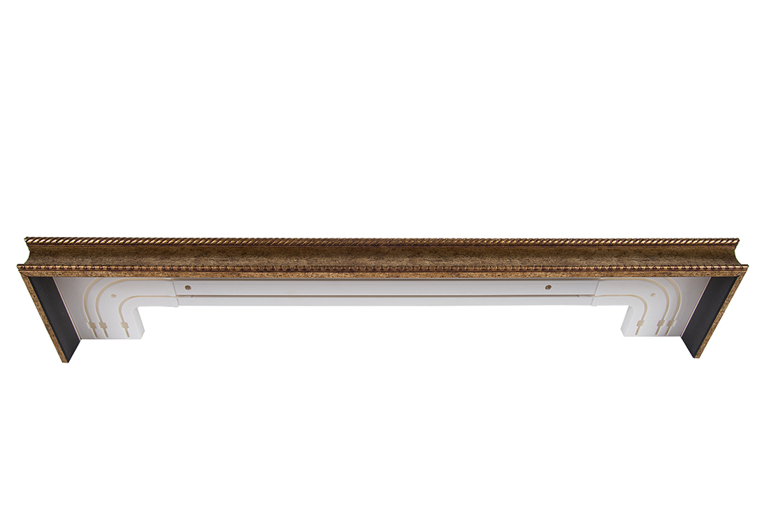 Главная / Каталог / Карнизы / Потолочные пластиковые карнизы для штор / Карниз №1 с закруглениями и багетной планкой / Карниз потолочного крепления трех рядный №1-1 старое золото в инд. упак.160 см