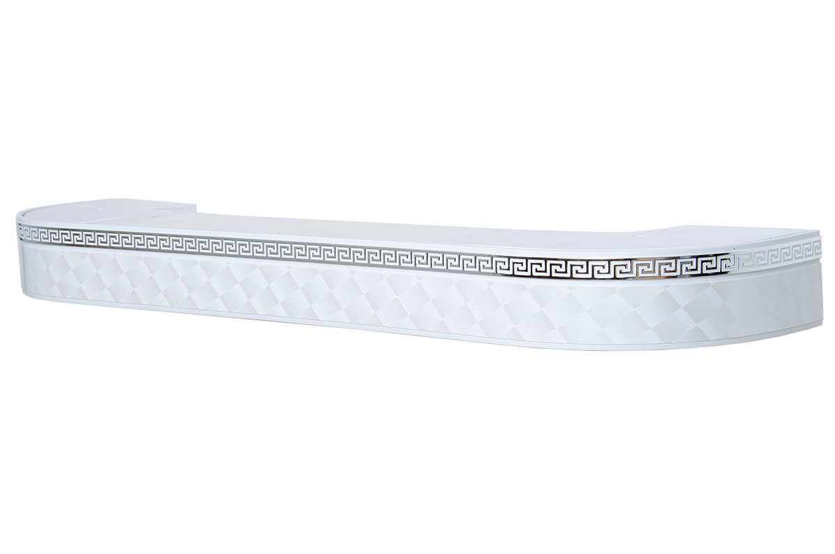 Главная / Каталог / Карнизы / Потолочные пластиковые карнизы для штор / Карниз 2ряда с закруглениями + бленда декоративная / 160 карниз Стандарт 2-х рядный Лабиринт 50мм жемчужная мозаика/серебро с пласт.декор. планкой в инд
