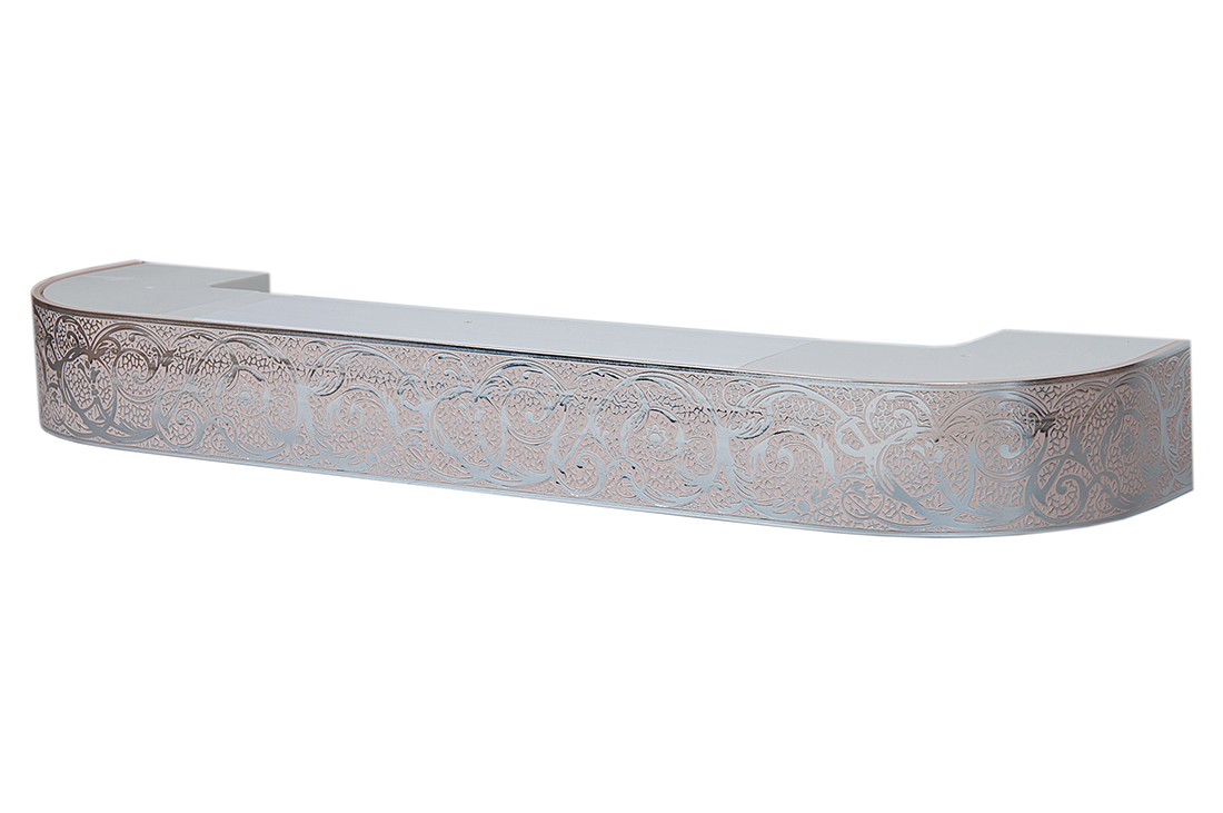 Главная / Каталог / Карнизы / Потолочные пластиковые карнизы для штор / Карниз 2ряда с закруглениями + бленда декоративная / 360 карниз СТАНДАРТ ВЕНЗЕЛЬ 2х рядный серебро св.розовый с планкой 70мм в инд. уп.