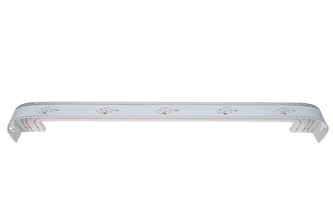 Главная / Каталог / Карнизы / Потолочные пластиковые карнизы для штор / Карниз 2ряда с закруглениями + бленда декоративная / 380 карниз СТАНДАРТ Лист 2х рядный с планкой 70мм серебро белый в инд. уп.