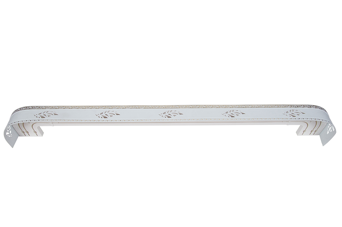 Главная / Каталог / Карнизы / Потолочные пластиковые карнизы для штор / Карниз 2ряда с закруглениями + бленда декоративная / 240 карниз СТАНДАРТ Лист 2х рядный с планкой 70мм золото белый в инд. уп.
