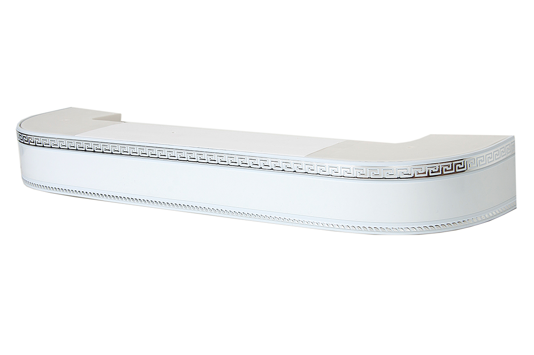 Главная / Каталог / Карнизы / Потолочные пластиковые карнизы для штор / Карниз 2ряда с закруглениями + бленда декоративная / 250 карниз СТАНДАРТ Меандр 2х рядный с планкой 70мм серебро белый в инд. уп.