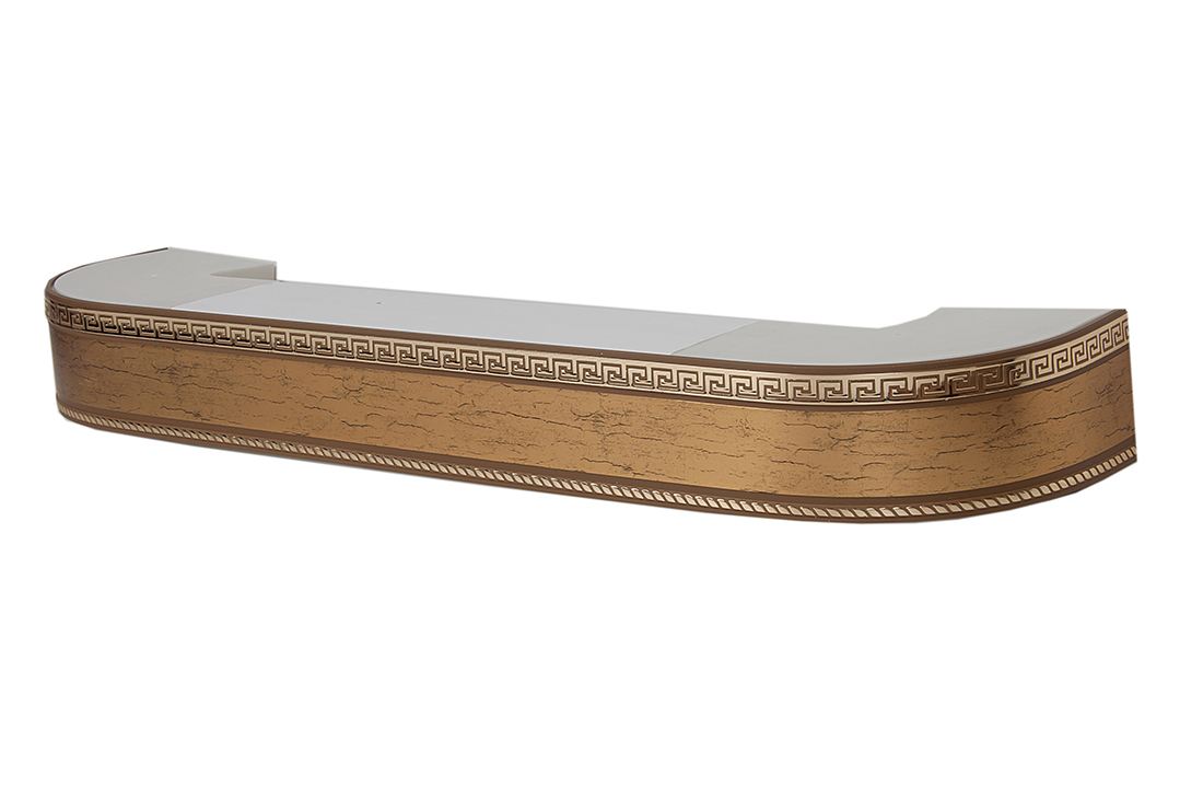 Главная / Каталог / Карнизы / Потолочные пластиковые карнизы для штор / Карниз 2ряда с закруглениями + бленда декоративная / 220 карниз СТАНДАРТ Меандр 2х рядный с планкой 70мм золото антик в инд. уп.