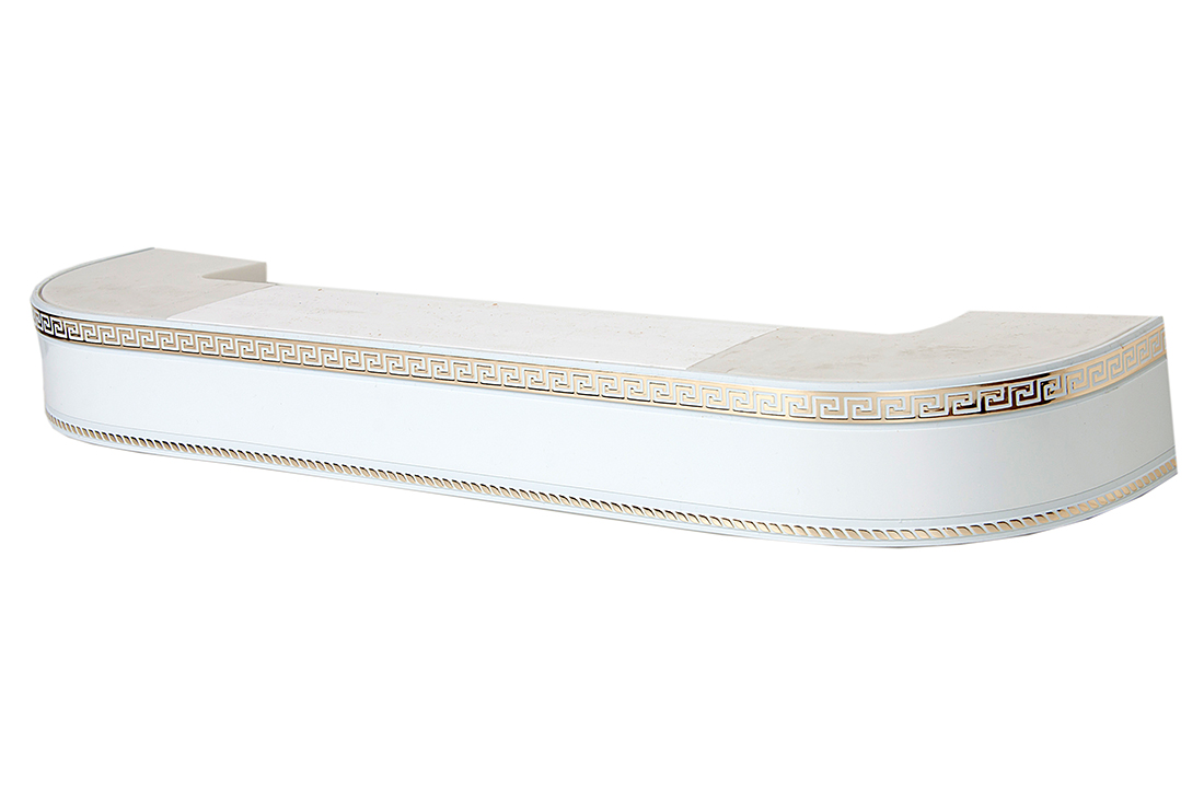 Главная / Каталог / Карнизы / Потолочные пластиковые карнизы для штор / Карниз 2ряда с закруглениями + бленда декоративная / 220 карниз СТАНДАРТ Меандр 2х рядный с планкой 70мм золото белый в инд. уп.