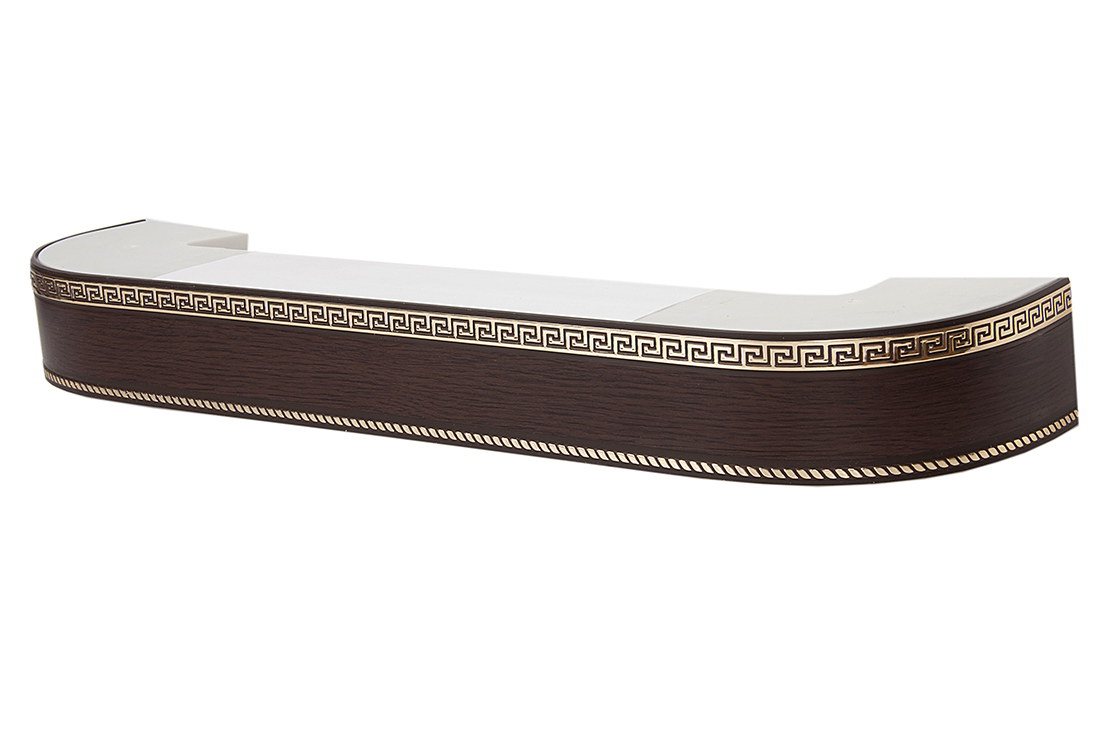Главная / Каталог / Карнизы / Потолочные пластиковые карнизы для штор / Карниз 2ряда с закруглениями + бленда декоративная / 350 карниз СТАНДАРТ Меандр 2х рядный с планкой 70мм золото орех в инд. уп.