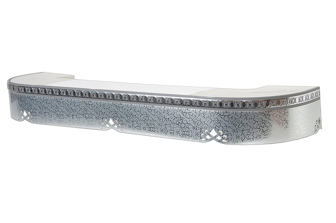Главная / Каталог / Карнизы / Потолочные пластиковые карнизы для штор / Карниз 2ряда с закруглениями + бленда декоративная / 300 карниз СТАНДАРТ Моцарт серебро 2х рядный с планкой 70мм элегант в инд. уп.
