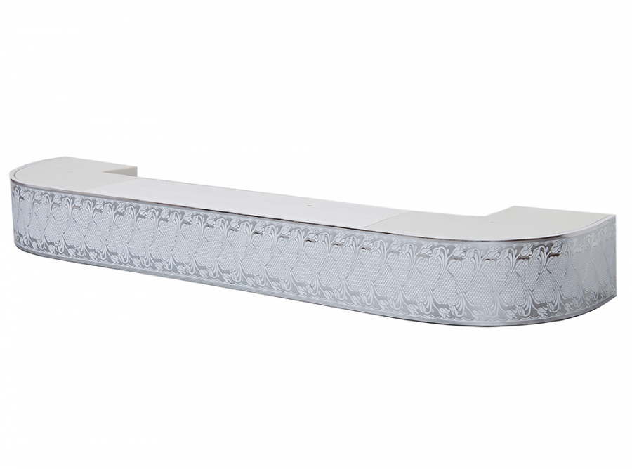 Главная / Каталог / Карнизы / Потолочные пластиковые карнизы для штор / Карниз 2ряда с закруглениями + бленда декоративная / 200 карниз СТАНДАРТ Прованс 2х рядный серебро белый с планкой 70мм в инд. уп.