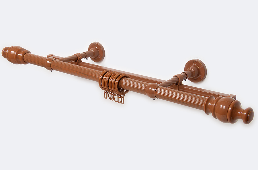 Классические круглые карнизы для штор отличаются большим разнообразием конструкции и используемых материалов. Более распространены однорядные и двухрядные модели, которые предполагают использование 2-х видов штор: из тяжелого и легкого материалов.